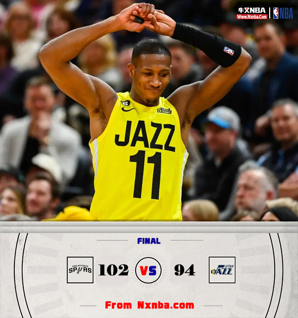末节,双方依靠造杀伤保持均势,格拉汉姆等人的发挥帮助马刺成功反超,关键时刻塔克连续外线开火帮助爵士抹平分差,之后双方得分交替上升多次出现平分,约翰逊连续得分帮助马刺杀死比赛悬念,爵士无力回天只得投子告负,全场比赛结束,马刺102-94逆袭爵士终结十六连败。